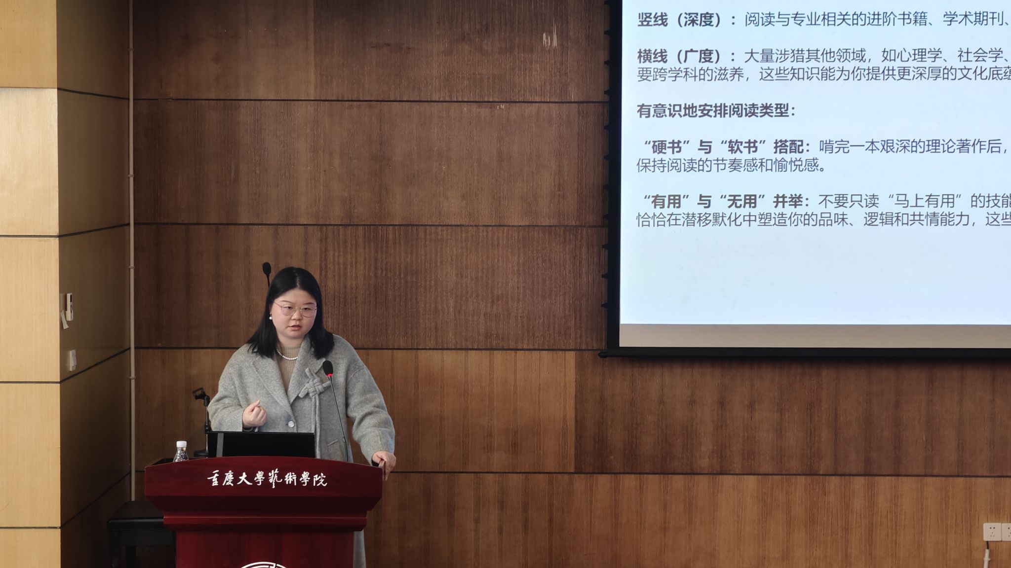 在弘扬教育家精神、科学家精神和工匠精神讲座环节,武若尘以《匠心铸画魂——忻东旺的艺术实践》为主题,解读艺术家的执着专注与人文关怀,寄语同学们踏实钻研、行稳致远。