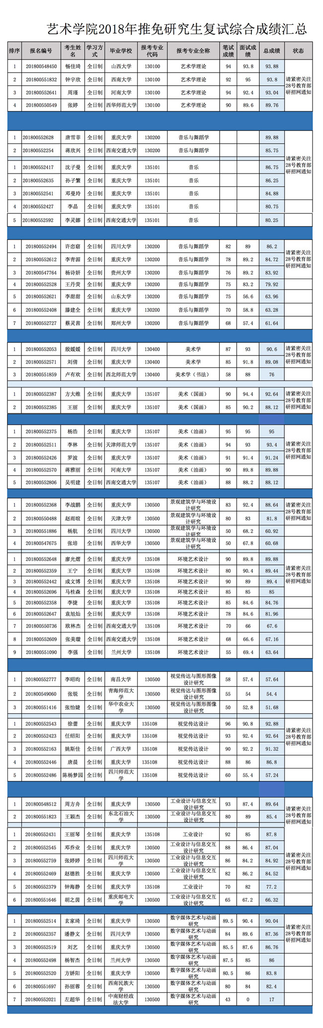 国产自慰 2018年推免研究生复试成绩公示