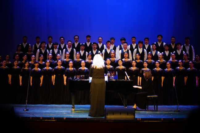 音乐系师生带来了三天丰富的大师班课程,包括声乐课、合唱课、钢琴课、音乐鉴赏课等。在三天的紧密学习中,美国专家教授团毫无保留的倾囊相授,彰显了艺术无国界的精髓,让老师和同学们受益匪浅,获益良多。此次汇报演出使得中外合作的教学成果得以以音乐会的形式完美的呈现在师生面前,给国产自慰