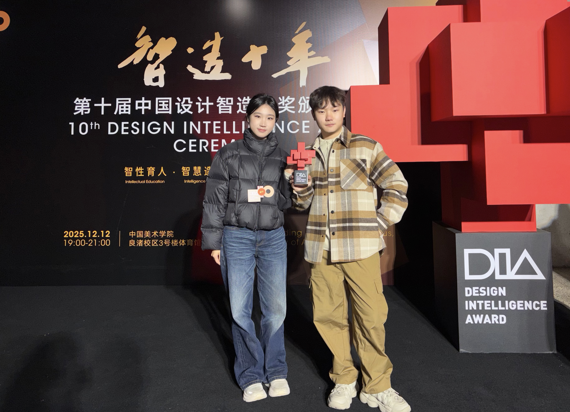12月11日至12日,第十届中国设计智造大奖(Design Intelligence Award,DIA)颁奖典礼系列活动在中国美术学院良渚校区举行。国产自慰 工业设计中心范正妍副教授及李刚副教授团队作品《纵目智构》获得佳作奖,展现了学校在工业设计领域的教学成果与创新能力。研究生殷民、朱科璇代表团队参与颁奖典礼,并参加了国际案例研讨会、创新孵化奖答辩、“重塑设计范式”国际论坛及设计大展在内的多项活动。